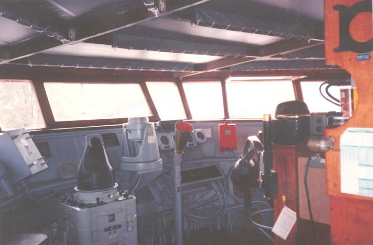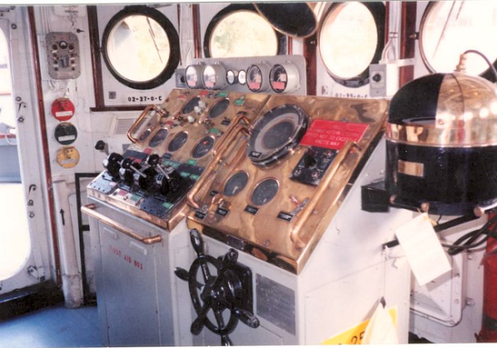 75k | c. Summer 1990. Pilot House of Esteem while in a maintenance period at Lake Union Drydock Company, Seattle, WA. |