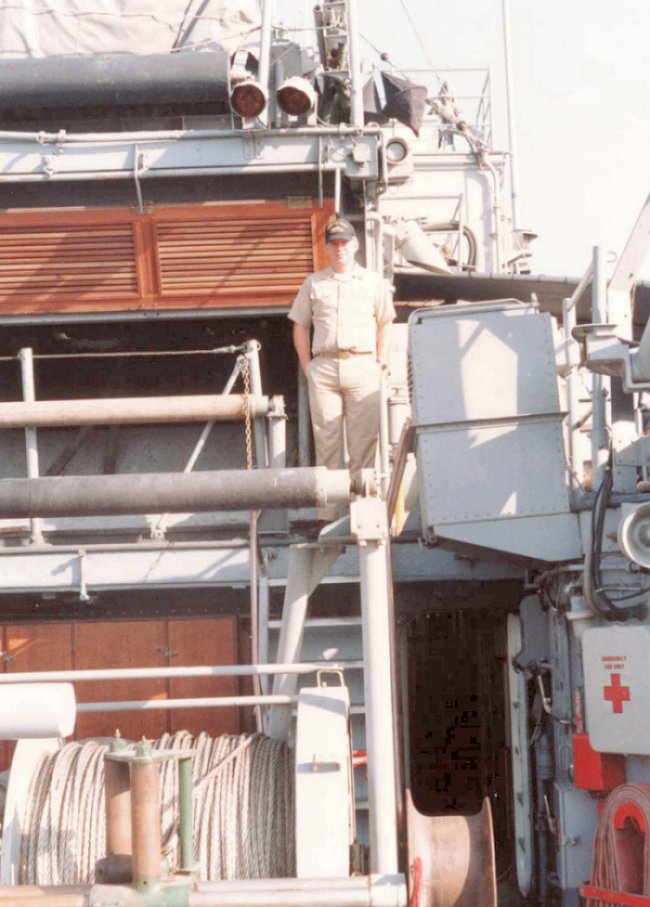 106k | c. fall 1989. LT Dave Bruin, Esteem's Chief Engineer. Basrac Shipyard. |