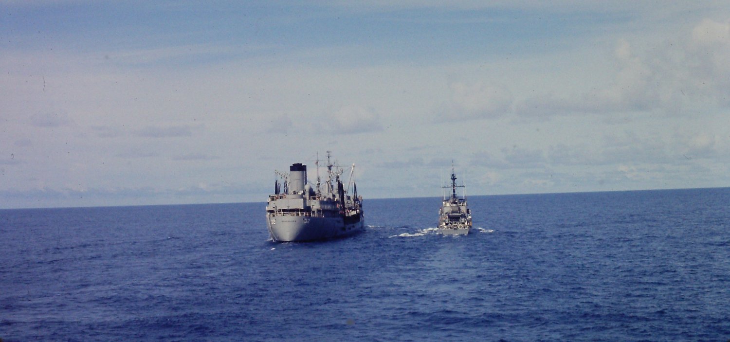 137k | c. Spring 1973 USS Guadalupe (AO-32) refueling Esteem off the coast of Vietnam during Operation Endsweep |