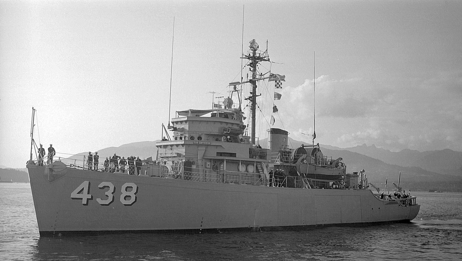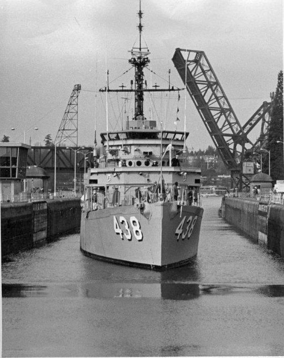177k | c. September 1957 Returning to Long Beach, CA from deployment to WestPac Bridge Officer on the right is LTJG Stanley H. Cochran |
