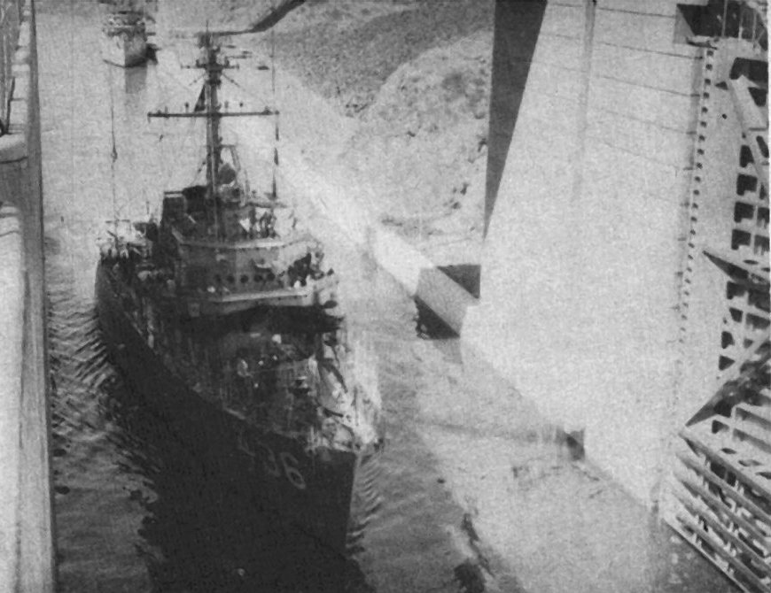 100k | Energy (MSO 436) and Pivot (in background), pass through locks in the Columbia River U.S. Navy photo from the January 1962 issue of All Hands magazine |