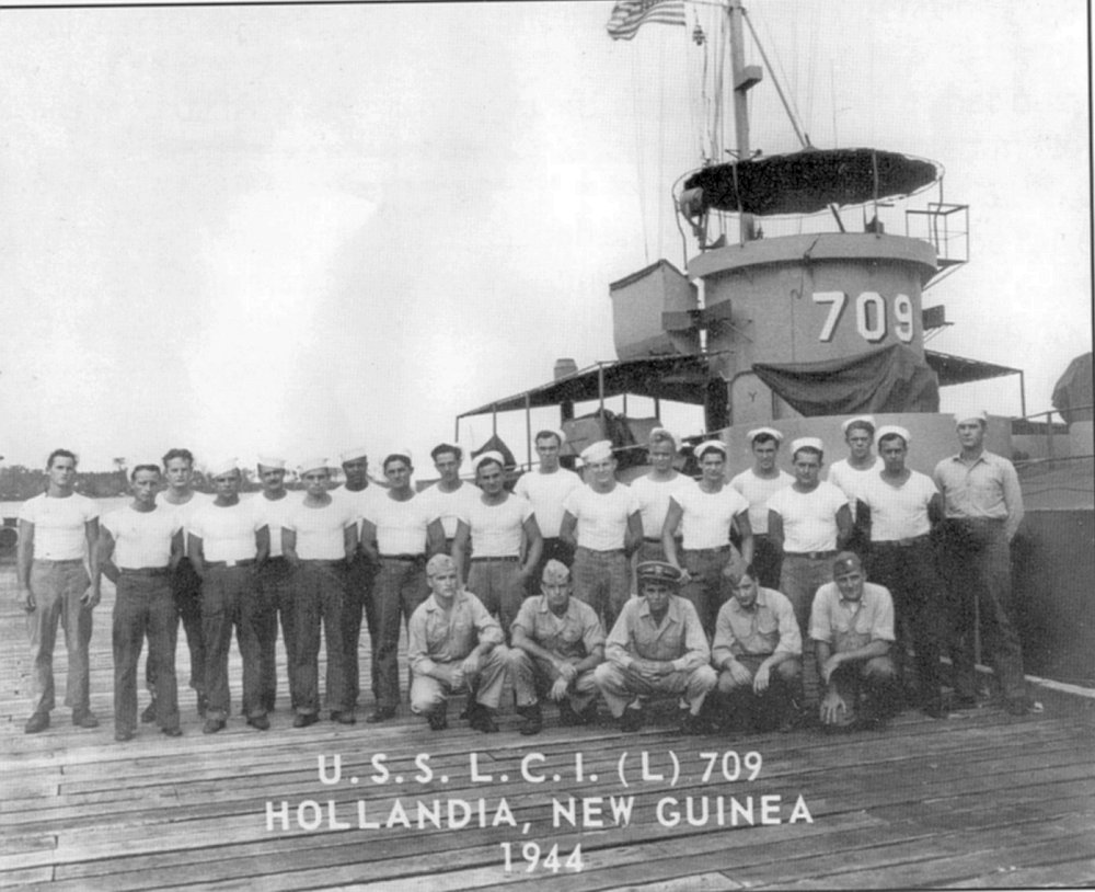 c. 1944 Hollandia, New Guinea Photo from the June 2006 edition of the USS LCI National Association's newsletter "The Elsie Item" Courtesy of Umberto "Bond" Bonosoro, USS LCI(L)-709 |