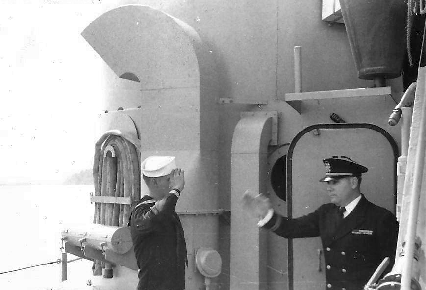 Captain's Inspection LT Henry, followed by ENS Hobsheid. Chief Miller is on the left |