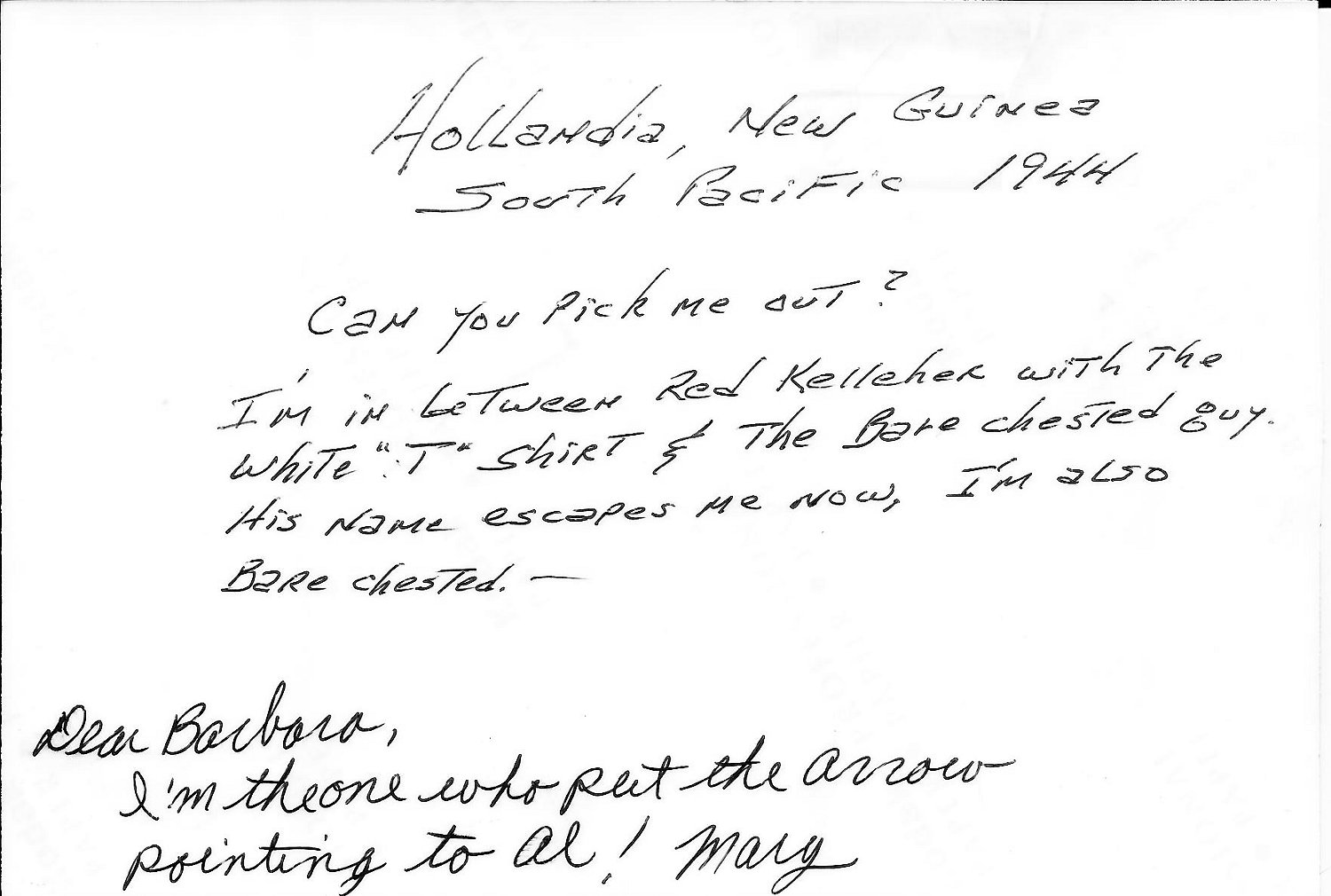 c. 1944 Hollandia, New Guinea Crew photo (front and back) From the collection of Umberto Bonosoro, (arrow) crewmember 1944 - August 1945 |