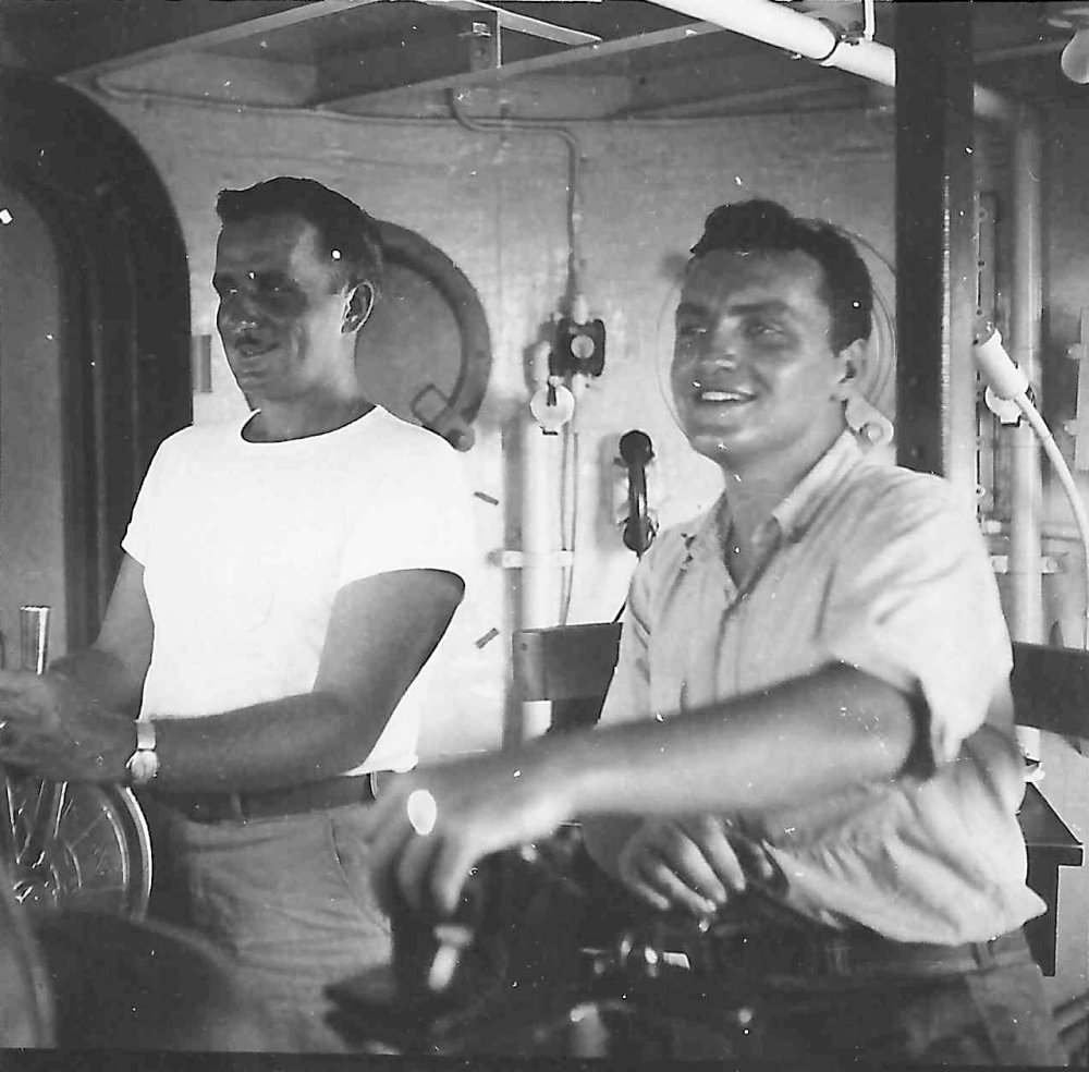 c. 1945 Paul Whitman, left, on the engine order telegraph |