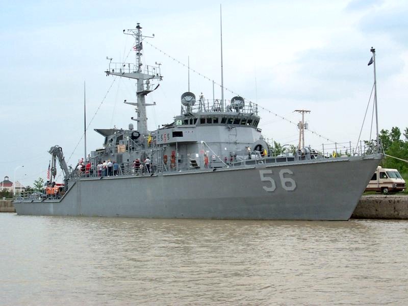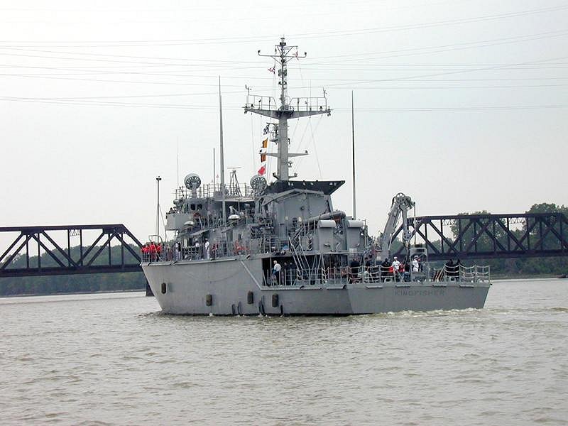 19 May 2000 Toledo, Ohio Kingfisher sails into the Maumee River on its way to the Port of Toledo. She was visiting Toledo as part of the Navy's annual Great Lakes Cruise. The Navy sponsors the annual cruise to raise awareness of the Navy for the people of the Great Lakes Region and to promote recruiting U.S. Navy photo by Lt. Scott McIlnay. [000519-N-8321M-001] |