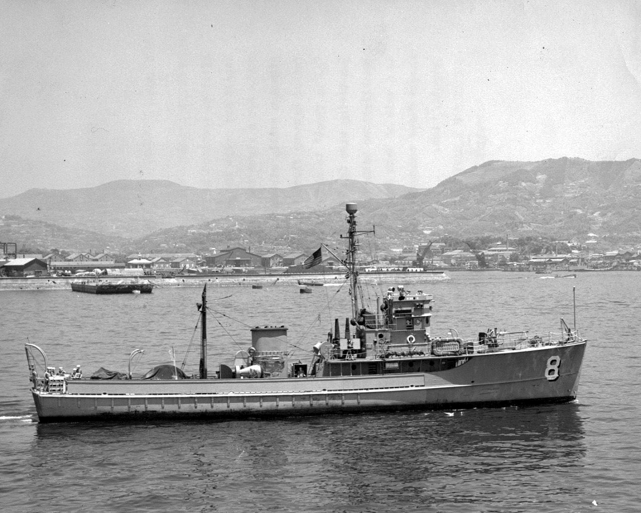 14 June 1951 Entering port after an extended tour in Korean waters. The little wooden vessel has swept the waters of Wonsan and Chinnampe in North Korea since its arrival in the Far East the previous November USN photo 429828 from the National Archives |