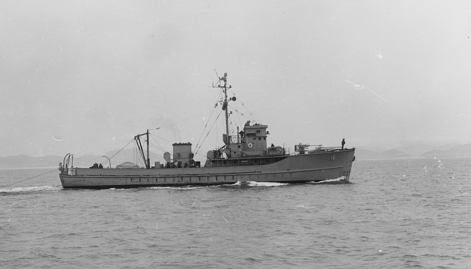 Sweeping for mines during a commando raid by British Royal Marines at Chinnampo, North Korea. Original photo is dated 15 June 1951. This operation was intended to cut rail and other enemy supply lines. Note the lookout watching for mines off Gull's bow National Archives photo 80-G-430072 |