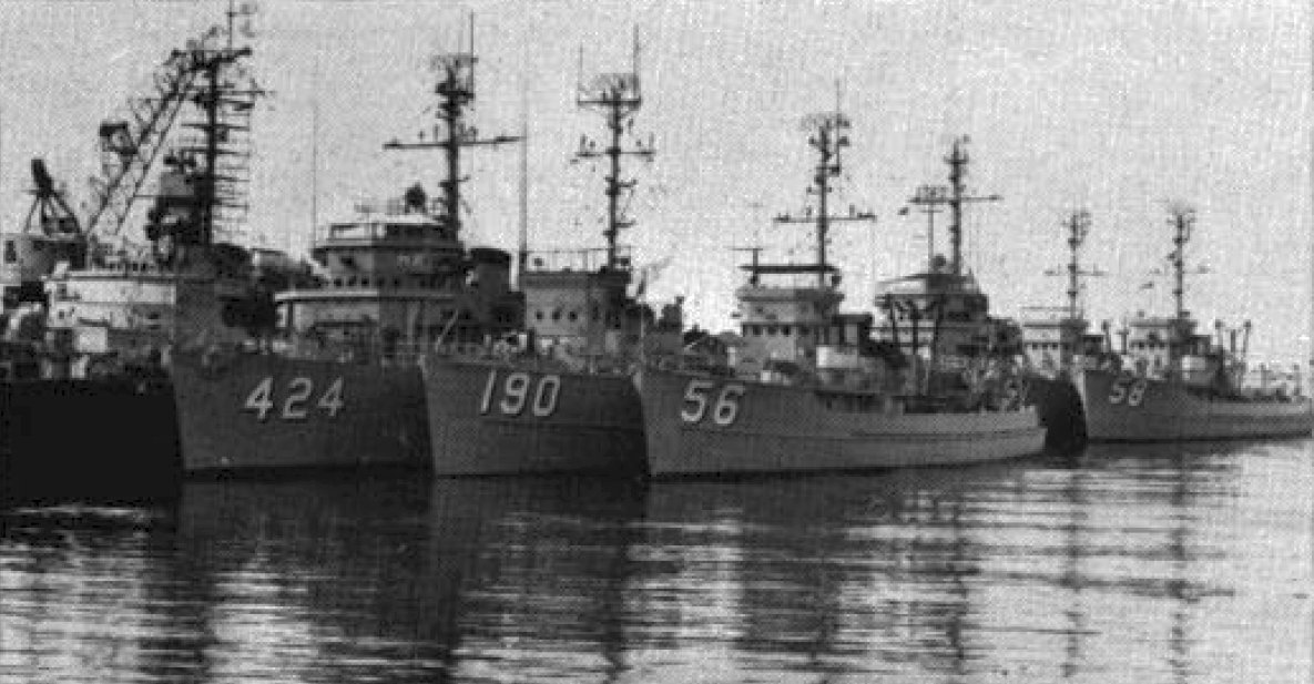 Shrike (MSC 201), Redwing (MSC 200), Humming Bird (MSC 192), Frigate Bird (MSC 191), and Falcon at Charleston, SC U.S. Navy photo from the June 1956 issue of All Hands magazine |