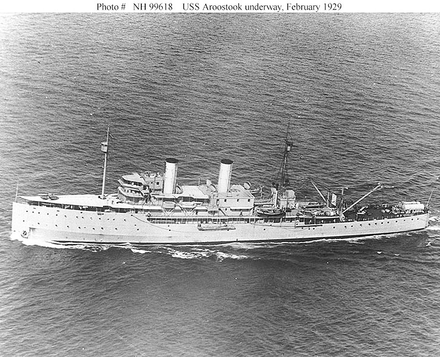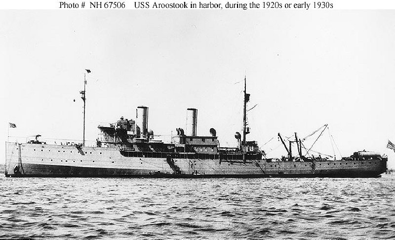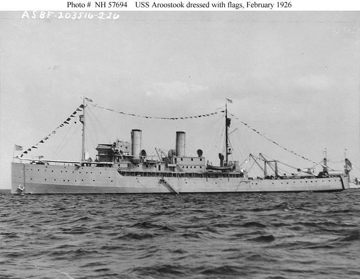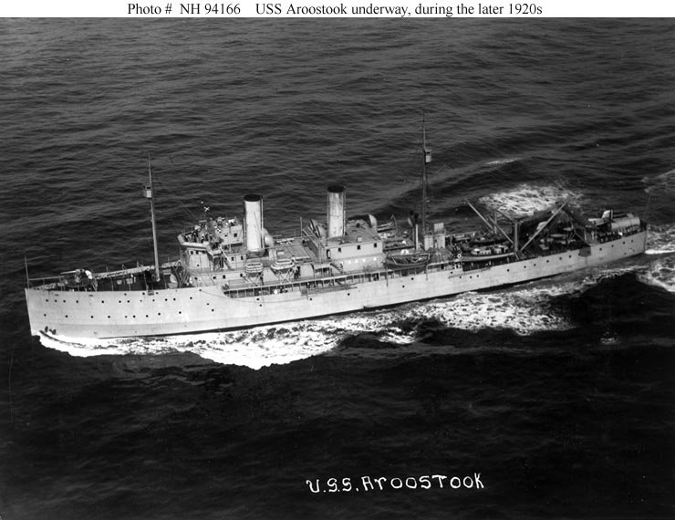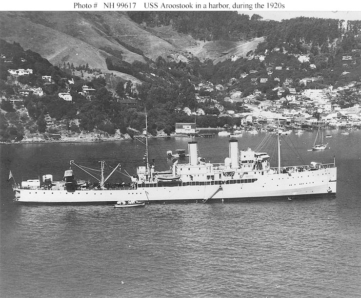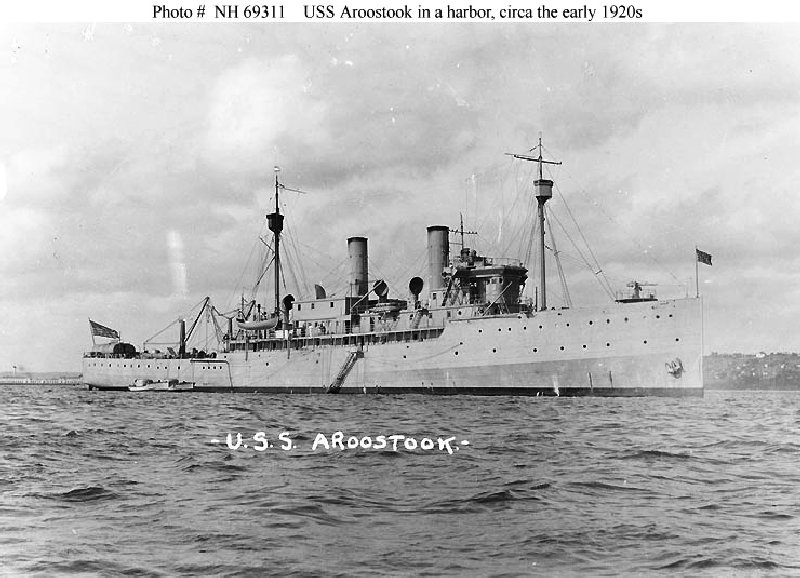 Panoramic photograph of the Atlantic Fleet at Guantanamo Bay, Cuba, 1920, by Schutz, Washington, D.C. Aroostook is just offshore, beyond the palm trees in the right center of | the image Naval History and Heritage Command photo NH 99614 Robert Hurst |