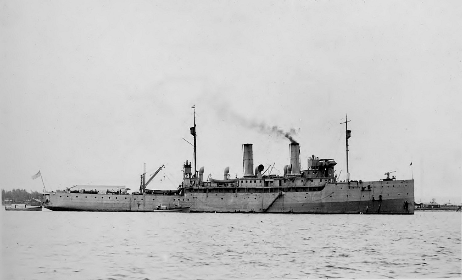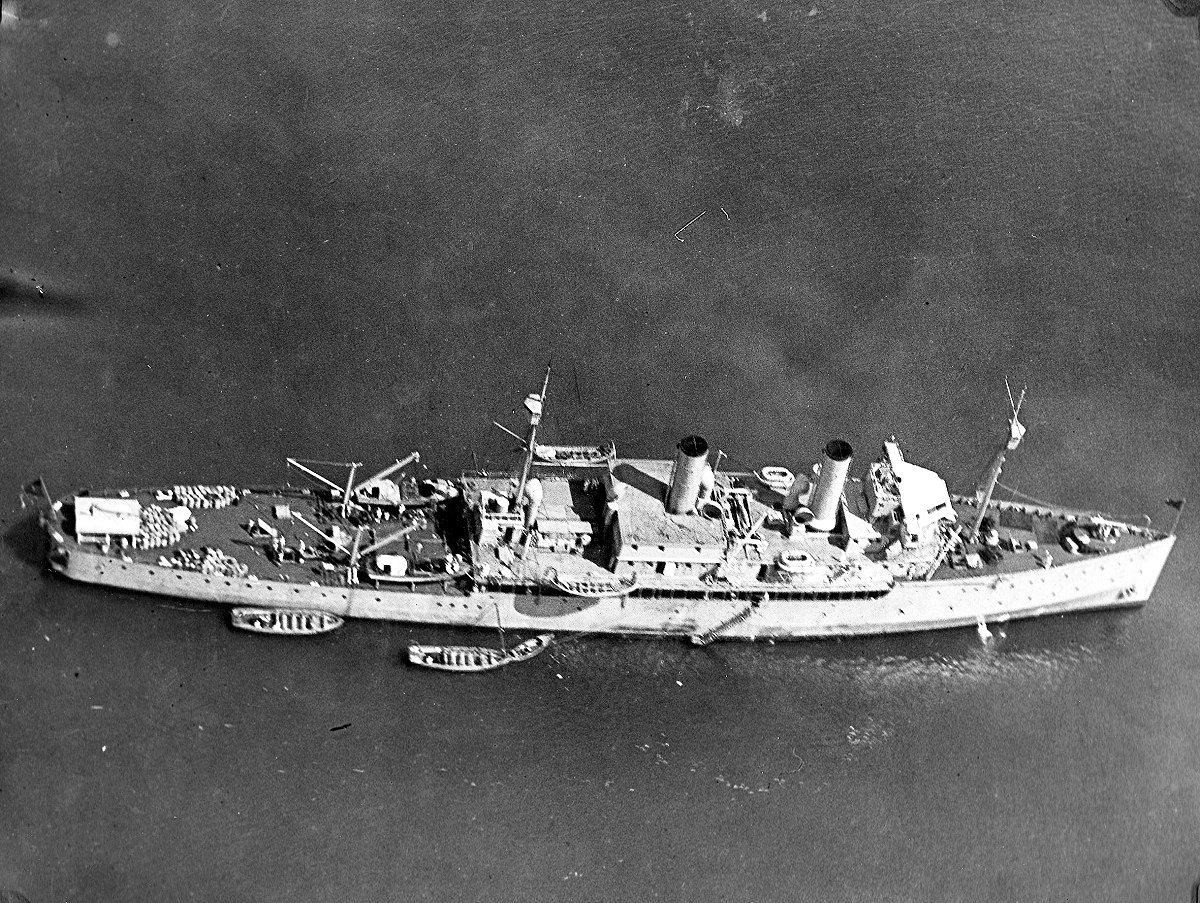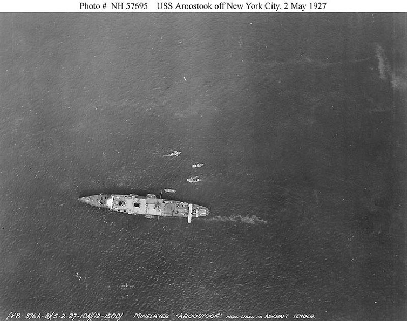 Aerial view of the Aroostook in July 1921. The ship is supporting bombing tests conducted by Navy and Army aircraft off the Virginia Capes | U.S. Navy and Marine Corps Museum/Naval Aviation Museum photo 2008.104.001.239 Mike Green |