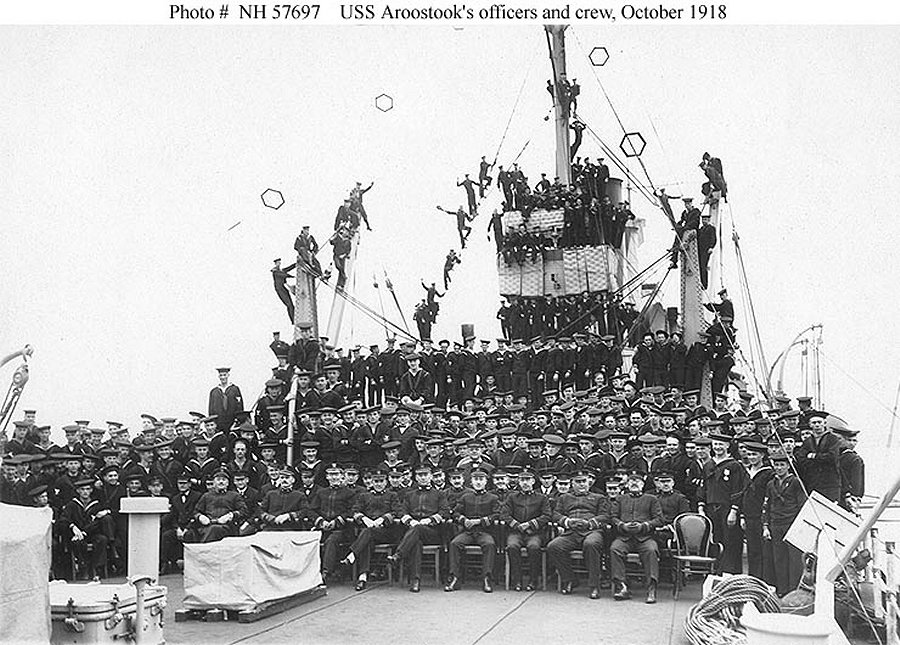 168k | Officers and crew posed on her after deck, while she was at Invergordan, Scotland, in October 1918. Note mats hung on Aroostook's after superstructure for protection against shell splinters Naval History and Heritage Command photo NH 57697 from Shipscribe.com | Robert Hurst | ||||||||||||||||||||||||||||||||||||||||||||||||||||||||||||||||||||||||||||||||||||||||||||||||||||||||||||||||||||||||||||||||||||||||||||||||||||||||||||||||||||||||||||||||||