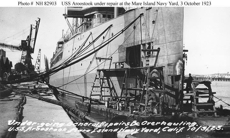 Undergoing general repairs and overhaul at the Mare Island Navy Yard, California, 3 October 1923 | Donation of Mrs. Kelly Green, 1974 Naval History and Heritage Command photo NH 82903 Robert Hurst |