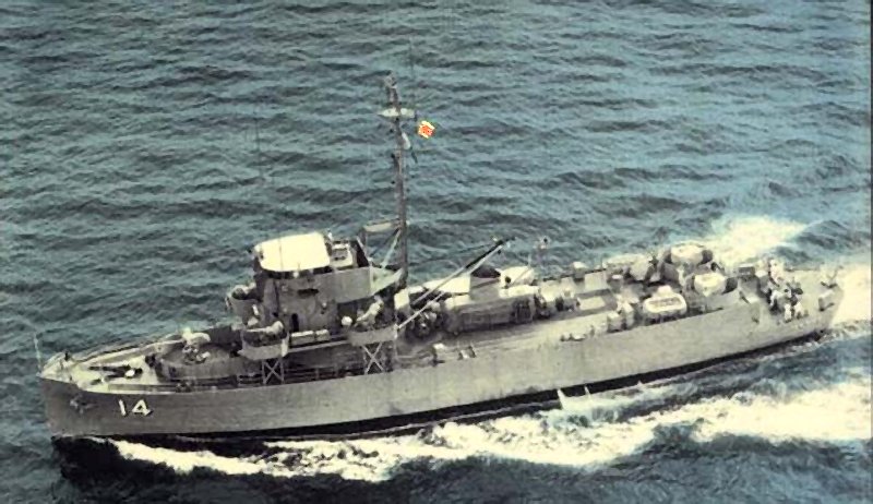 PCE(R)-853 approaches the USS Nevada (BB 36) and LCT-1405 to receive casualties on 30 March 1945 off Kerama Retto during the Okinawa campaign National Archives photo from the October 2009 edition of Naval History magazine |