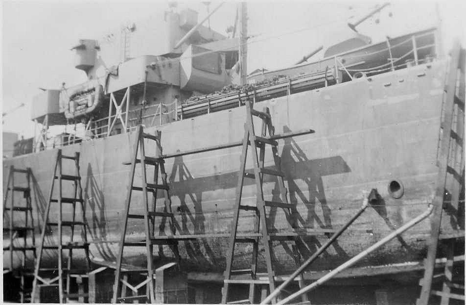 c. 1945 Dry docked at Pearl Harbor |