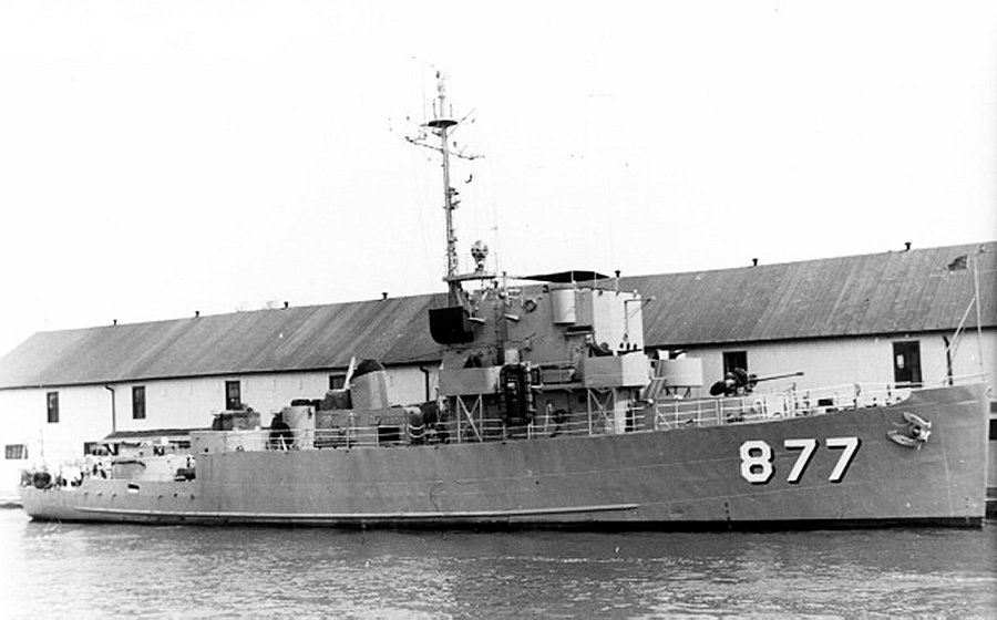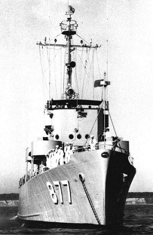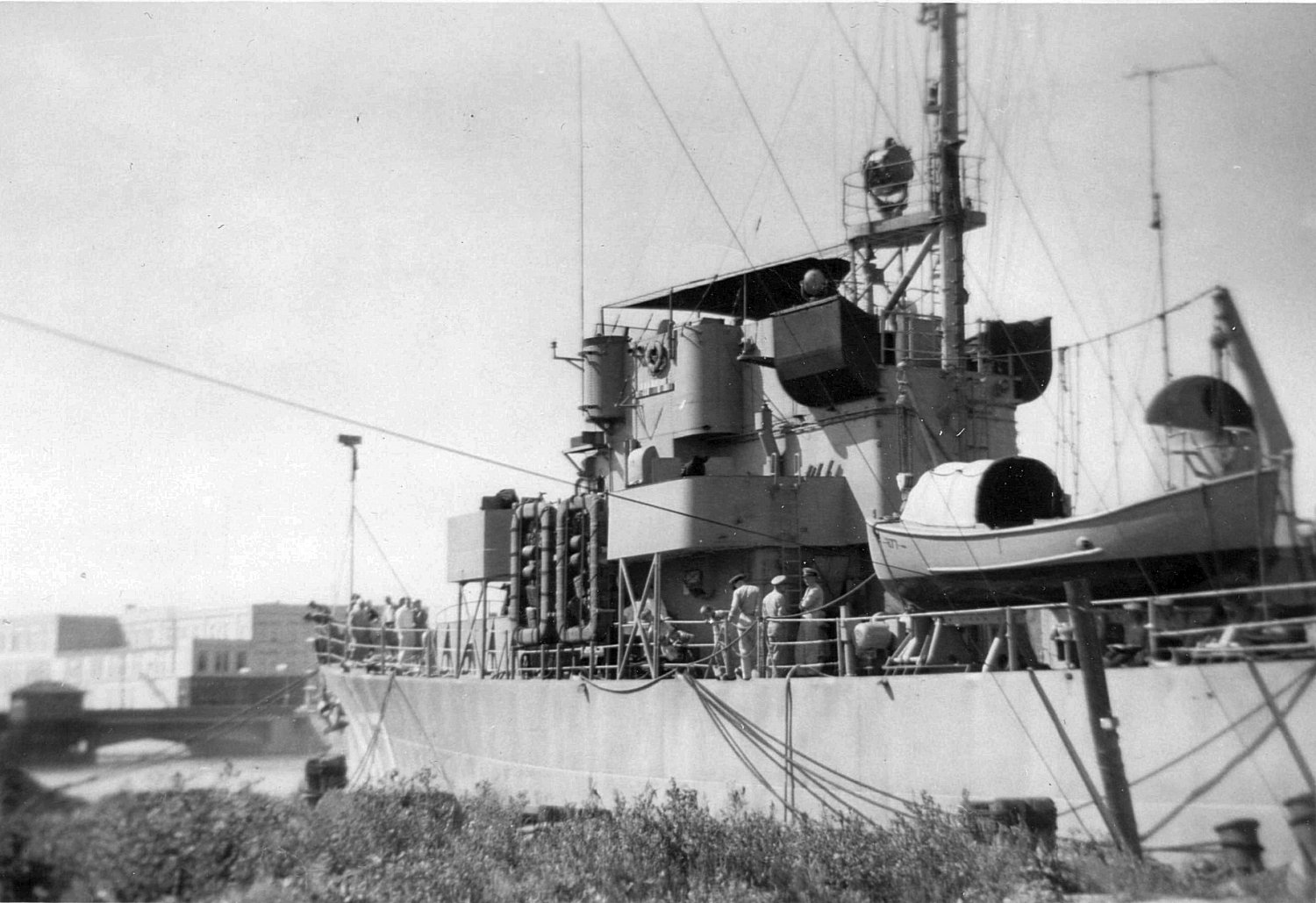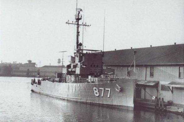 c. Summer 1954 Moored alongside the waterfront parking lot of “The Flame”, a Duluth, MN nightclub. One of the seven ships of the Great Lakes Training Fleet that consisted of one DE and six PCEs Photo taken from the Daniel A. Joy (DE 585) |