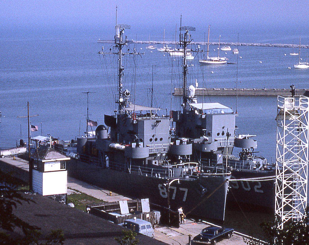c. 1960 Chicago, IL Moored inboard of Portage (PCE 902) at the Naval Reserve Training Center piers Photo by Dave Schroeder |