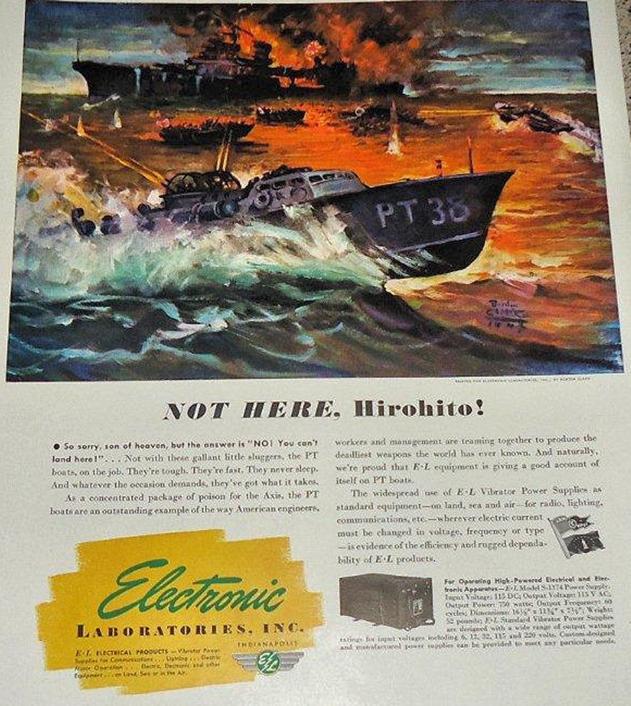 239k | c. 1944 Advertisement featuring painting by Benton Clark from Electronic Laboratories, Indianapolis, Indiana |