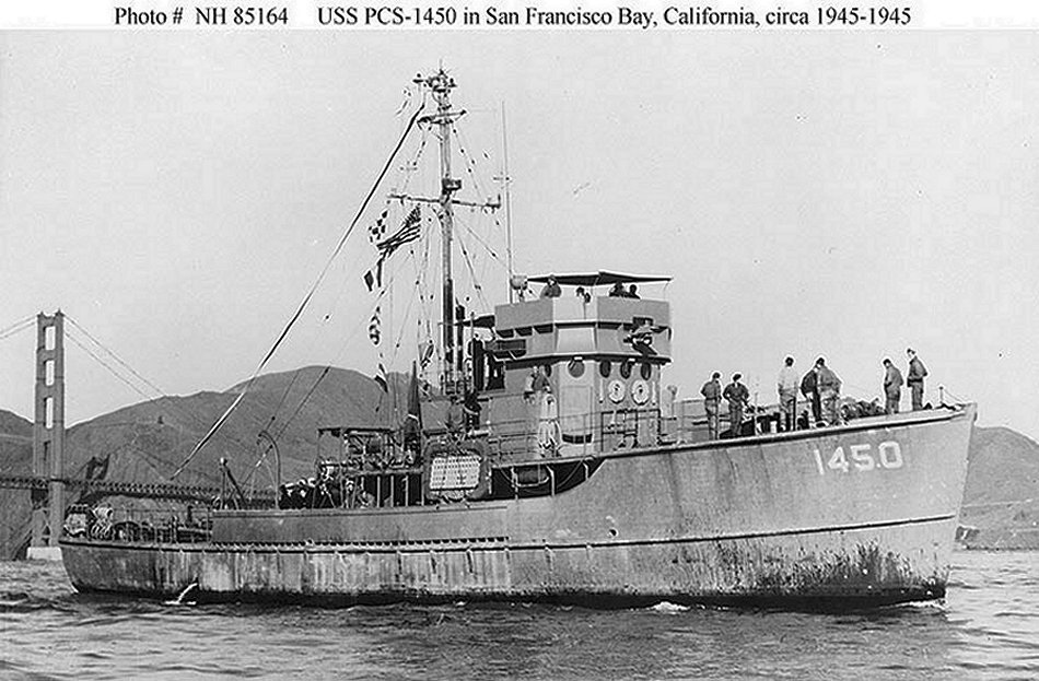 PCS-1405 (left) and PCS-1450 (right) are seen at Mare Island Naval Shipyard on 21 Aug 1946. They were at the shipyard for decommissioning from 4 May to 9 Aug 1946 and were transferred to the Coast & Geodetic Survey per shipyard logs |