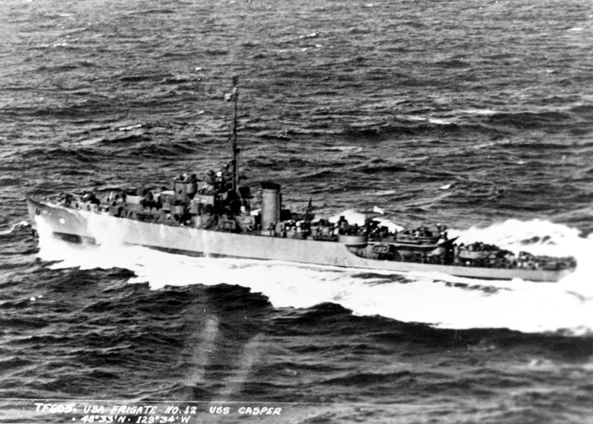 Underway in the eastern North Pacific (position 48 33'N, 129 34'W - [Off the southwest coast of British Columbia, Canada]) on 4 October 1944 Courtesy of Donald M. McPherson, 1974 Naval History and Heritage Command photo NH 7899 |