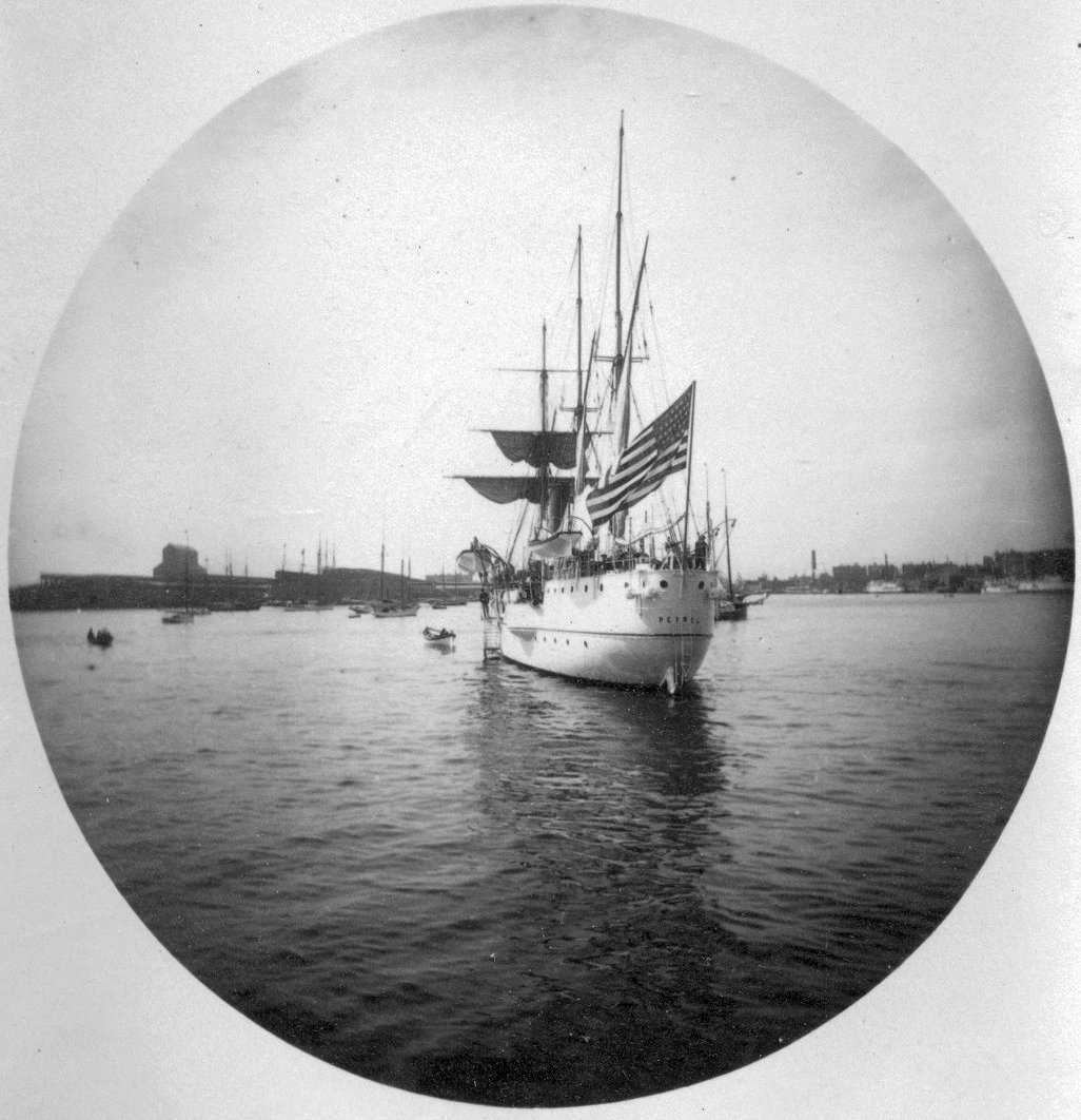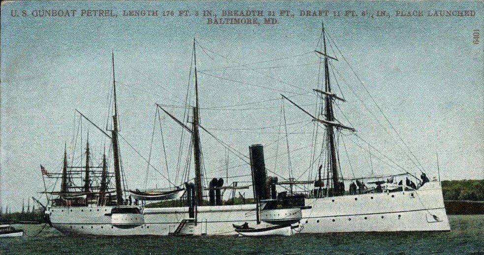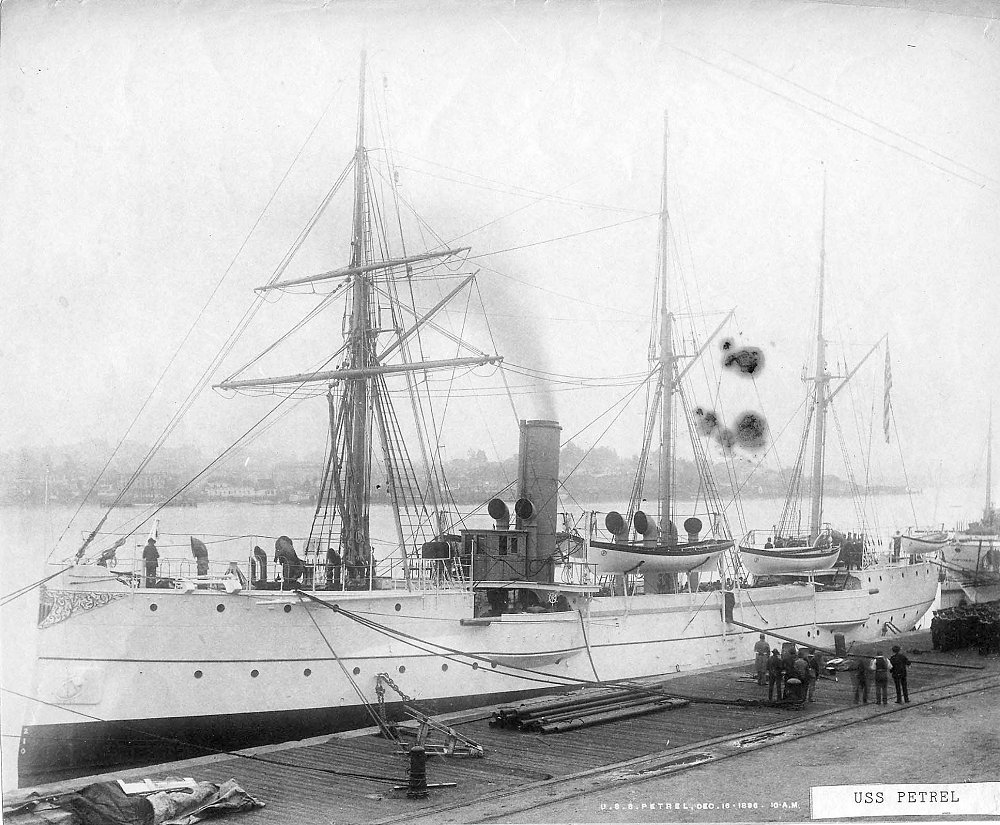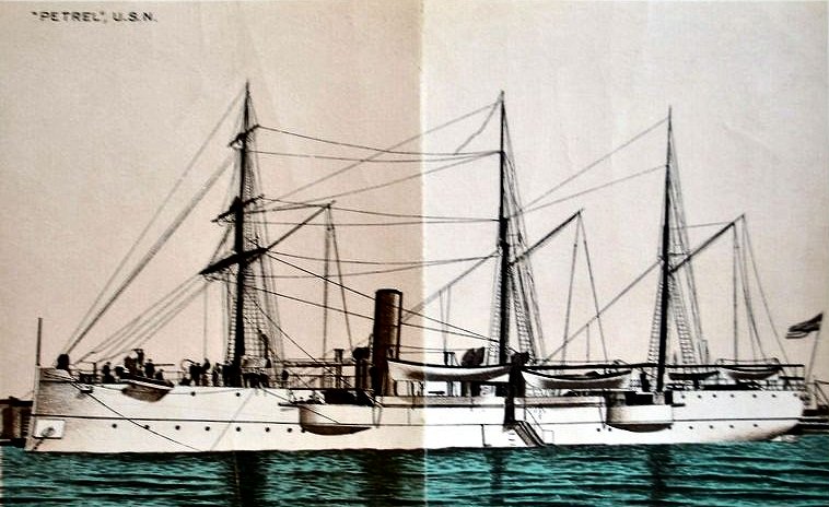 Original photo: "Life and Heroic Deeds of Admiral Dewey: Including Battles of the Philippines" Globe Bible Publishing Co., Philadelphia 1899 Replacement photo: Photo from The American Navy; Belford, Middlebrook and Co., Chicago - 1898 Second replacement photo: Port side view of USS Petrel (Gunboat No. 2) at anchor, circa 1891 Department of the Navy photo. Bureau of Construction and Repair National Archives photo |