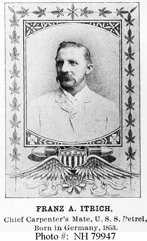 Franz A. Itrich, Chief Carpenter's Mate, USN, who was awarded the Medal of Honor for heroism during the Battle of Manila Bay, 1 May 1898. He was then serving aboard USS Petrel Halftone image published in Deeds of Valor, Vol.II, page 353, by the Perrien-Keydel Co., Detroit, Michigan, 1907 Naval Historical Center photo NH 79947 |