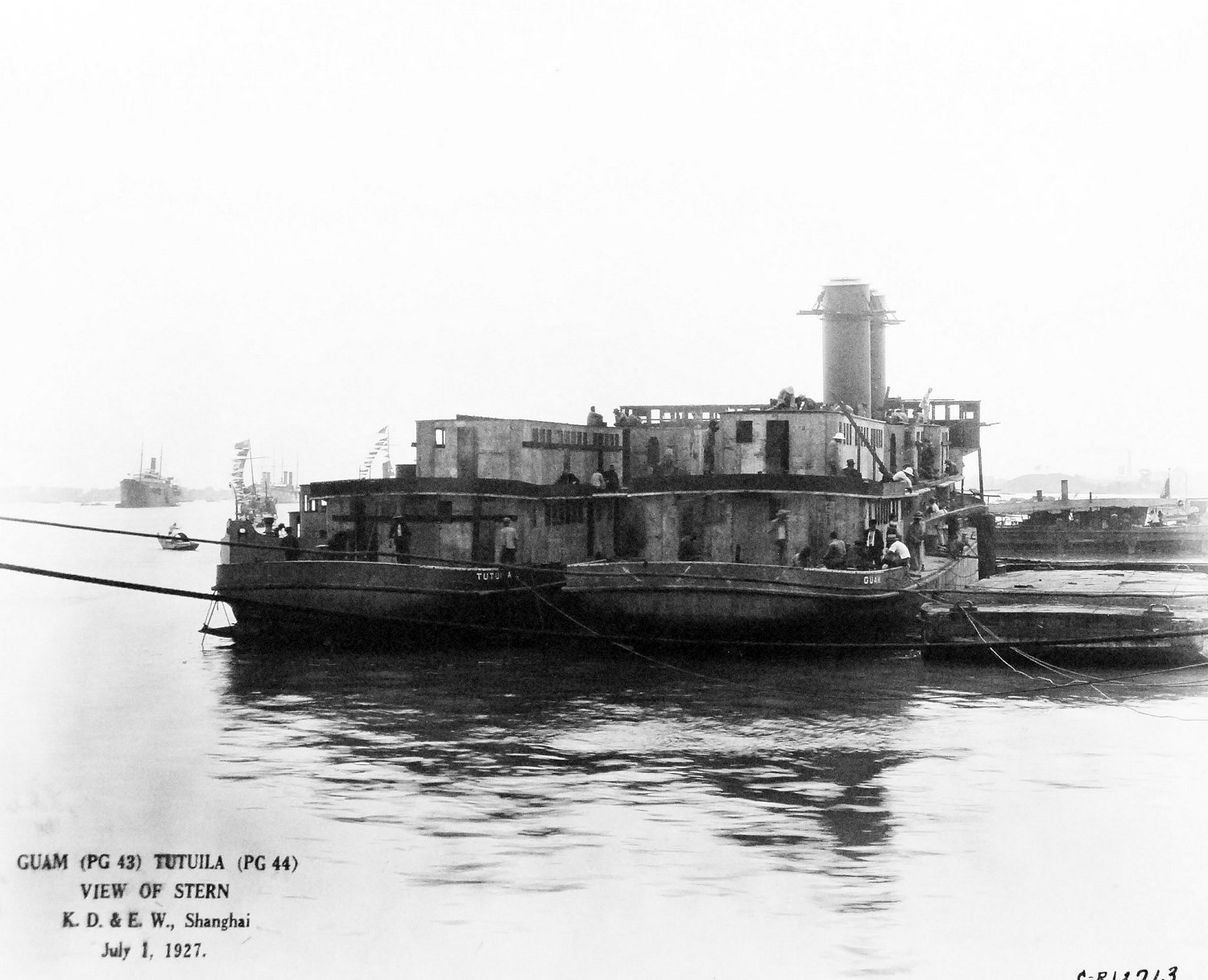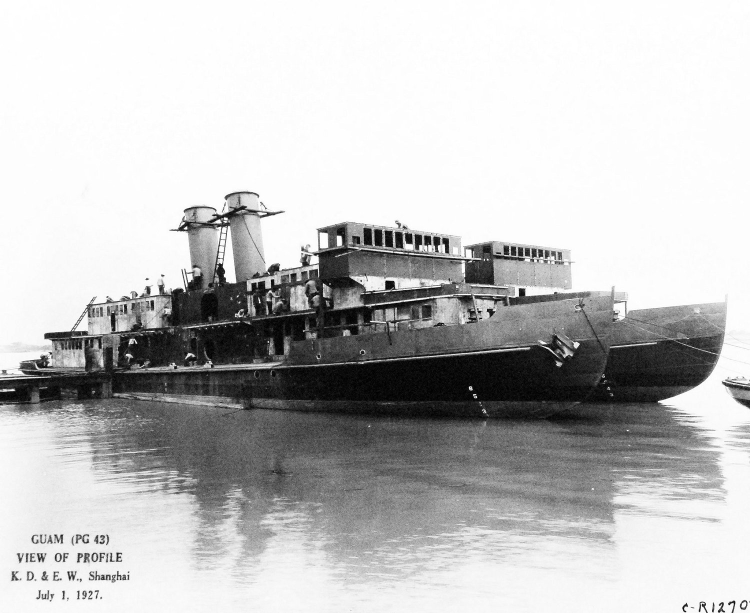 319k | 1 July 1927 Shanghai, China Under construction outboard of Guam (PG 43) Library of Congress photo from National Museum of the U.S. Navy |