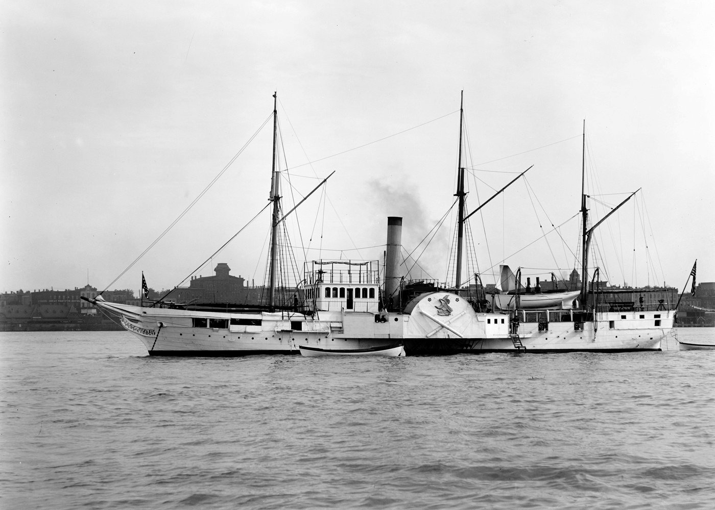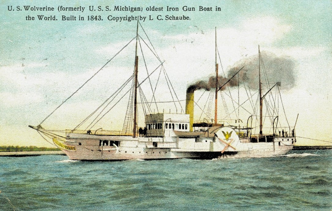 The side-wheel gunboat USS Michigan in Marquette, MI, before she was rebuilt. |