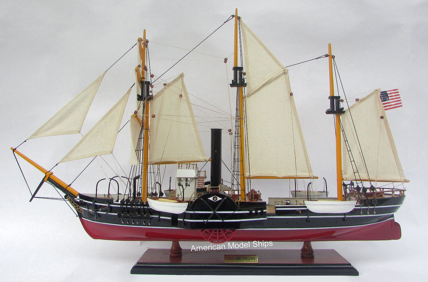 Fully assembled wooden model of Michigan Thanks to American Model Ships |