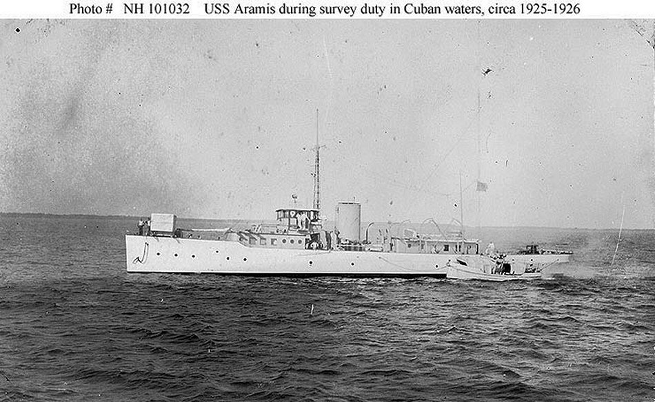 Photographed circa 1925-1926, while serving as tender to USS Nokomis (PY-6) during surveying duty in Cuban waters Copied from the USS Nokomis Cuban Survey album Donation of Carter Rila, 1986 U.S. Navy photos NH 101032 and NH 101411 |