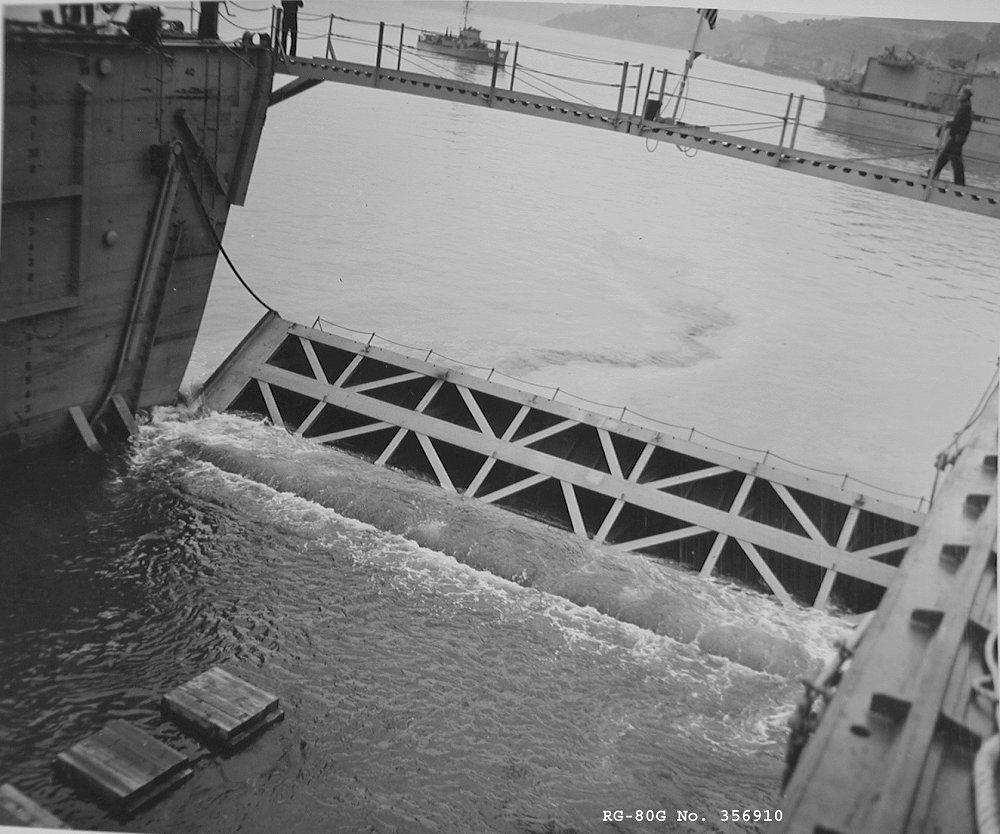 1 April 1944 Floating Dry Dock Training Center Tiburon, CA The tailgate of ARD-18 being lowered for flooding to receive SC-1372, above National Archives photo 80-G-356910 |