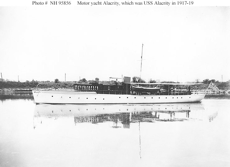 Assigned to the 1st Naval District section patrol, Alacrity spent World War I conducting patrols from the Boston and Provincetown section bases. Following the armistice in November 1918, the motorboat continued naval service until she was finally returned to her owner on 28 April 1919, the second anniversary of her acquisition. Her name was struck from the Navy list that same day.