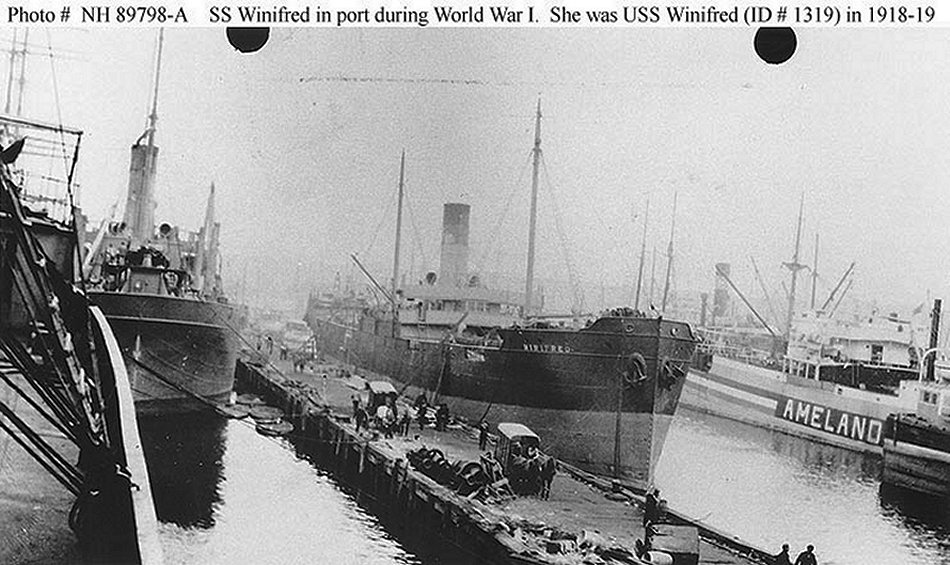 Assigned to the Naval Overseas Transportation Service and operating primarily from Cardiff, Winifred performed coastwise service in British waters and service across the English Channel, lifting supplies from English to French ports and vice versa, through the end of World War I.