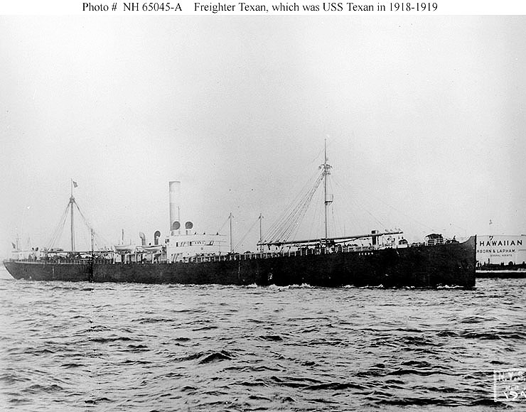 Photographed prior to World War I, with a building in the right background bearing the name of her owner, the American Hawaiian Steam Ship Company. The print carries her builder's stamp: New York Shipbuilding Corp. of Camden, New Jersey U.S. Navy photo NH 65045-A |