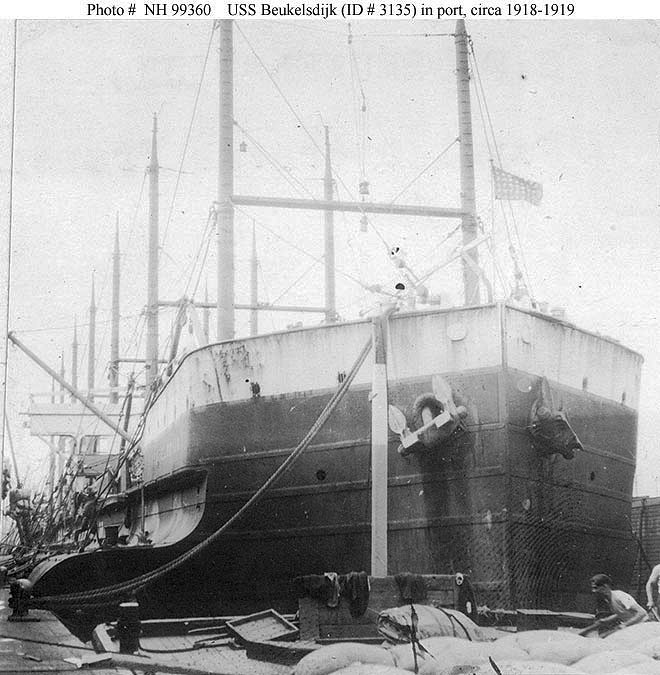 Beukelsdijk was assigned to the Naval Overseas Transportation Service and placed on the South American run carrying coal to Latin America and returning with coffee. Early in 1919 she carried a cargo of cotton and oil from Galveston, Texas, to Le Havre, France. While discharging cargo one of her boilers exploded, killing two men. After repairs to her boilers she sailed to Rotterdam, Holland, where she was returned to her owners 18 May 1919 through the Shipping Board.