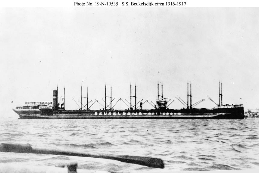 Beukelsdijk (No. 3135), a collier, was built in 1903 by William Doxford and Sons, Ltd., Sunderland, England, as Grängesberg (later renamed Beukelsdijk), taken over from her Dutch owners at San Juan, Puerto Rico, 21 March 1918 in accordance with the President's proclamation of the previous day, and commissioned the same day, Ensign F. L. Stiles, NNV, in command.