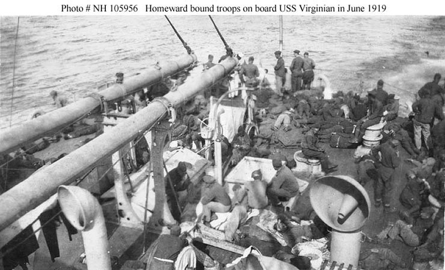 204k | In harbor, crowded with U.S. troops returning home from Europe, 1919 Photographed by O.E. Waterman Donation of Mrs. Sheilah R. Taylor, 1975. U.S. Navy Photo NH 83953 |