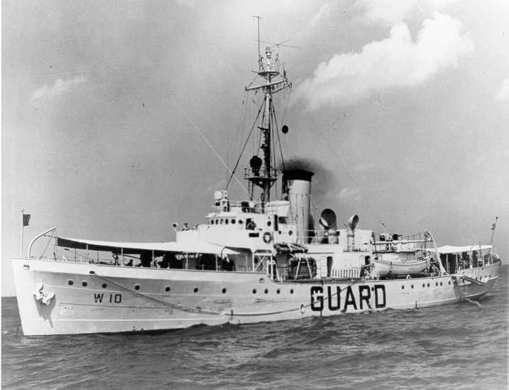 c. September 1952 Anchored at the entrance to Chesapeake Bay USCG photo 5582, 5CGD-090252-2 from the Coast Guard Cutter History website