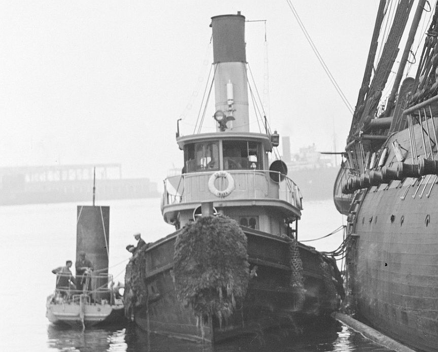 63k | Iwana (YT-2) underway in Boston harbor during the 1920s. Photo courtesy of the Boston Public Library, Leslie Jones Collection, accession number 08_06_006780 (cropped) |