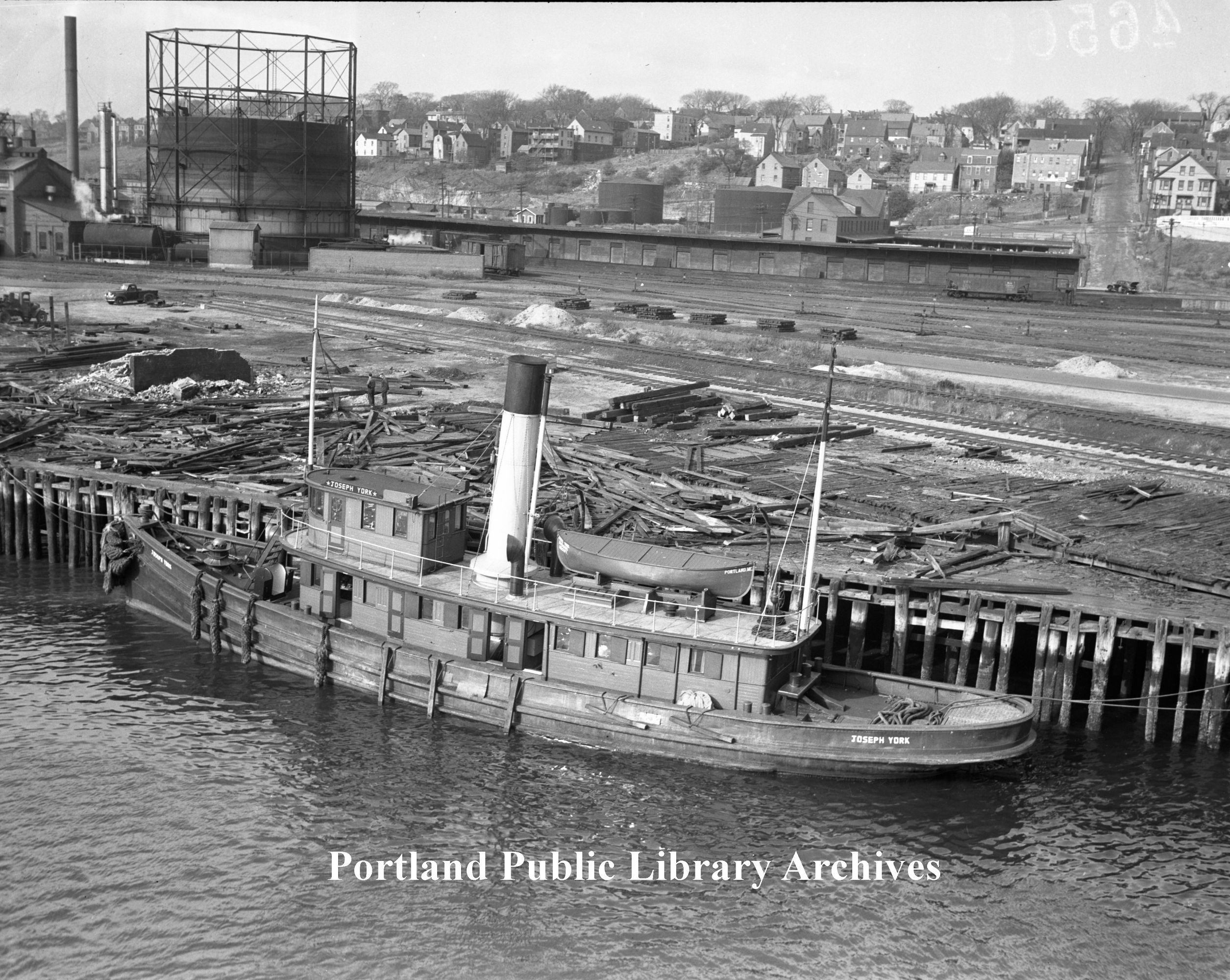 830k | Joseph York moored along the waterfront of West Commercial Street, Portland, ME, 1946. Photo courtesy Portland Press Herald Still-Film Negatives Collection, call number 46560 |