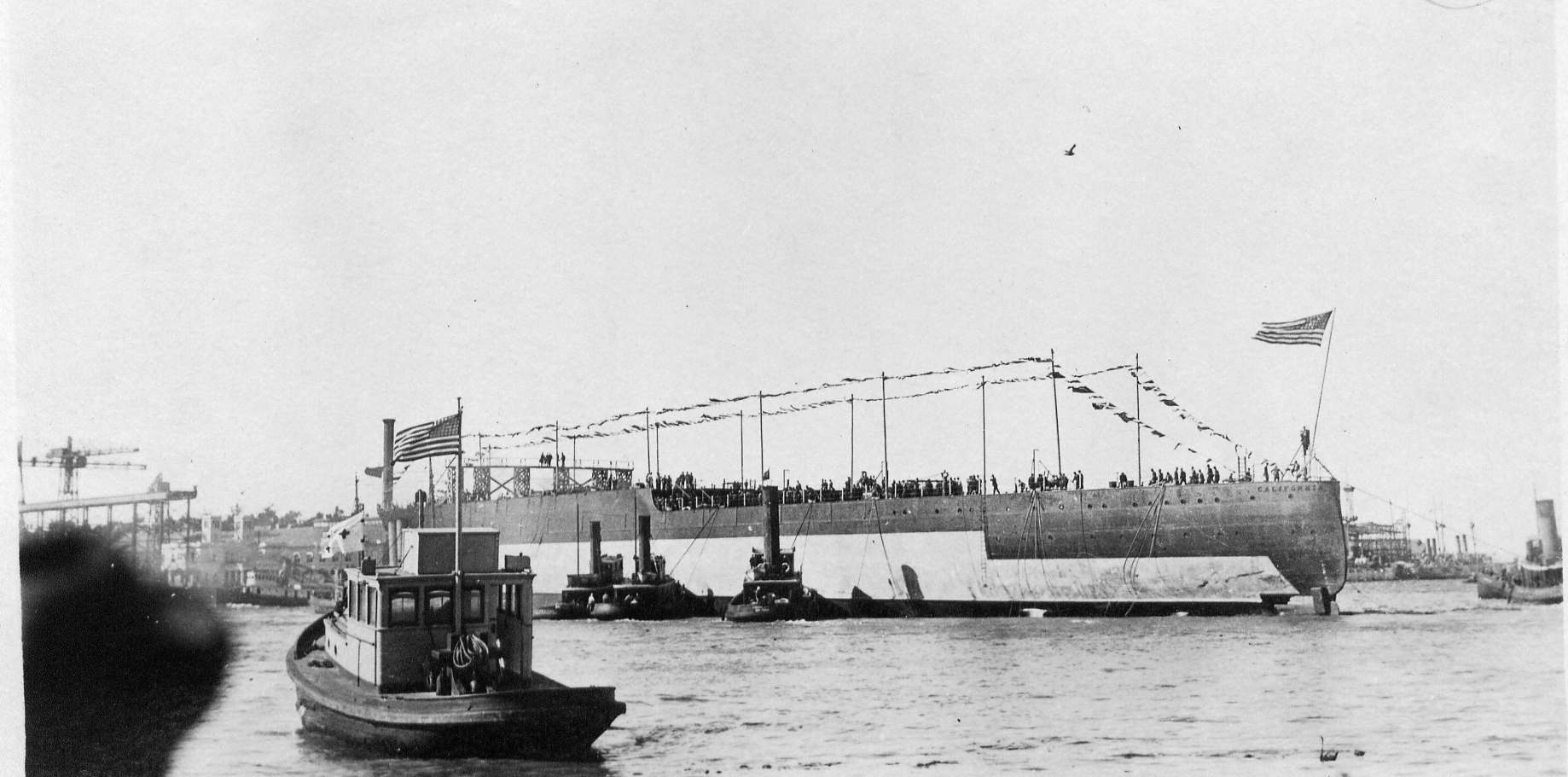 67k | Yard Ambulance Boat No.1 stands by as tugs work to pull California (Battleship # 44) off the mud on the Vallejo side of the Mare Island channel after her launching at Navy Yard Mare Island, 20 November 1919. | Darryl Baker | |