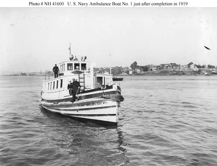 65k | Yard Ambulance Boat No.1 off Mare Island Navy Yard, probably soon after 18 August 1919, when she entered service.