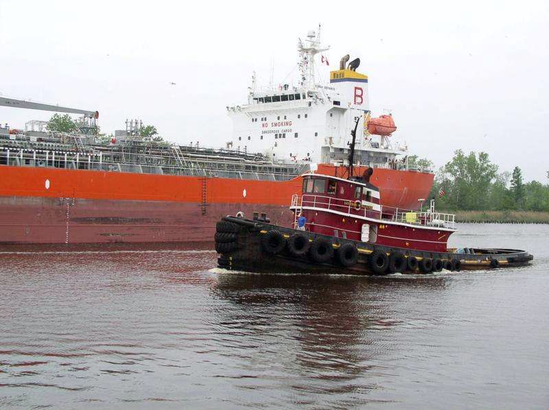 Ex-Heekon (YTM-141) in merchant service as the McAllister Towing tug Catherine McAllister, underway, date and location unknown. Photo courtesy tugboatinformation.com |