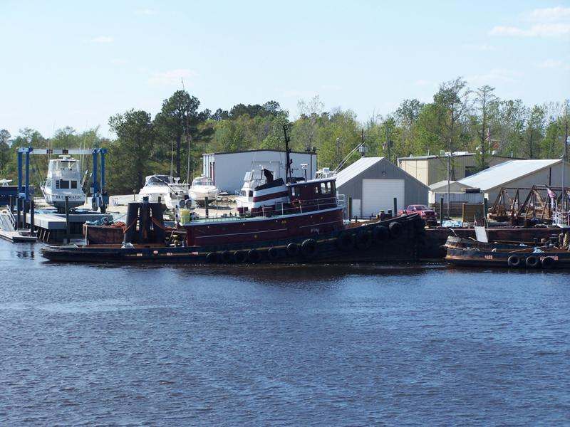 Ex-Heekon (YTM-141) in merchant service as the McAllister Towing tug Catherine McAllister, moored, date and location unknown. Photo courtesy tugboatinformation.com |