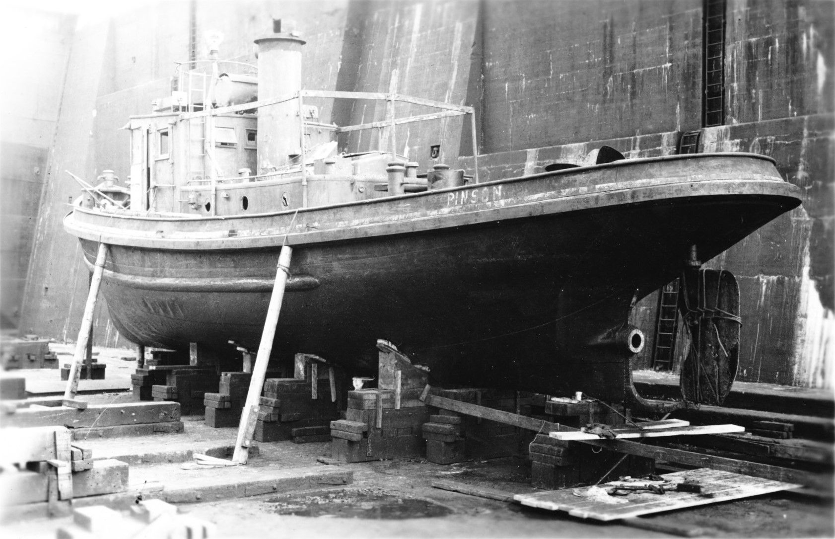 Pinson in drydock, probably at Toulon, date unknown. French Navy photo courtesy of Jacques Druel |