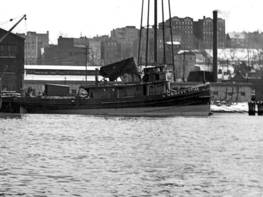 353k | Three views of Montezuma (YT-145) underway off New York City, probably on shakedown trials after completion. Photos recieved by Bureau of Ships 30 April 1941. National Archives photos 19-N-23820, 19-N-23821 and 19-N-23822 |