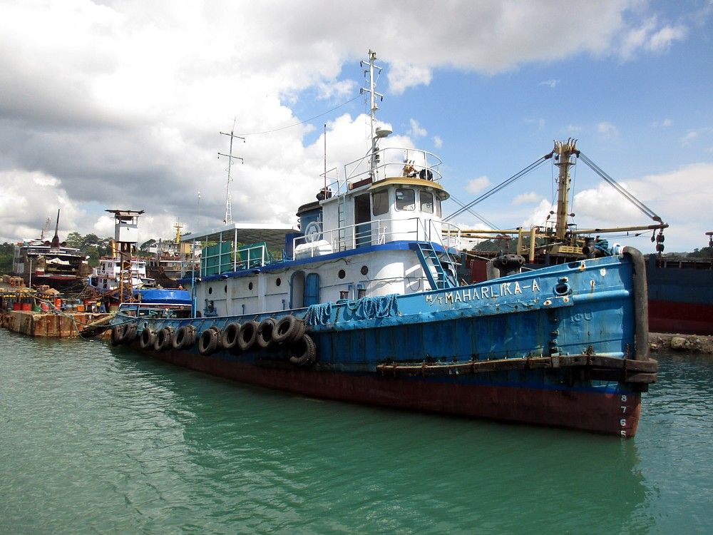 Ex- Madokawando (YTM-180) in foreign merchant service as MT Maharlika - A moored at Trigon Shipyard in San Fernando, Cebu, Philippines, 29 July 2015. |
