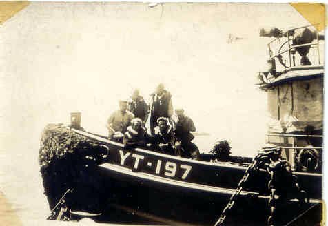 25k | YT-197 crew photo taken while the tugs was loaded on the deck of HM-427 while enroute to Bizerte, Tunisia in 1944. | Fred Reep Jr. | |
