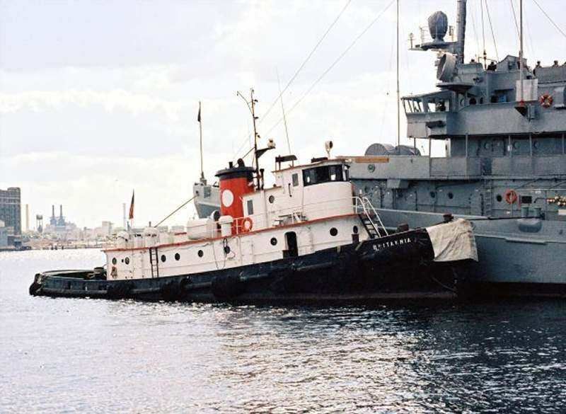 145k | Brittania alongside an unidentified naval vessel, date and location unknown. Photo by Harold E. Teal, courtesy tugboatinformation.com |