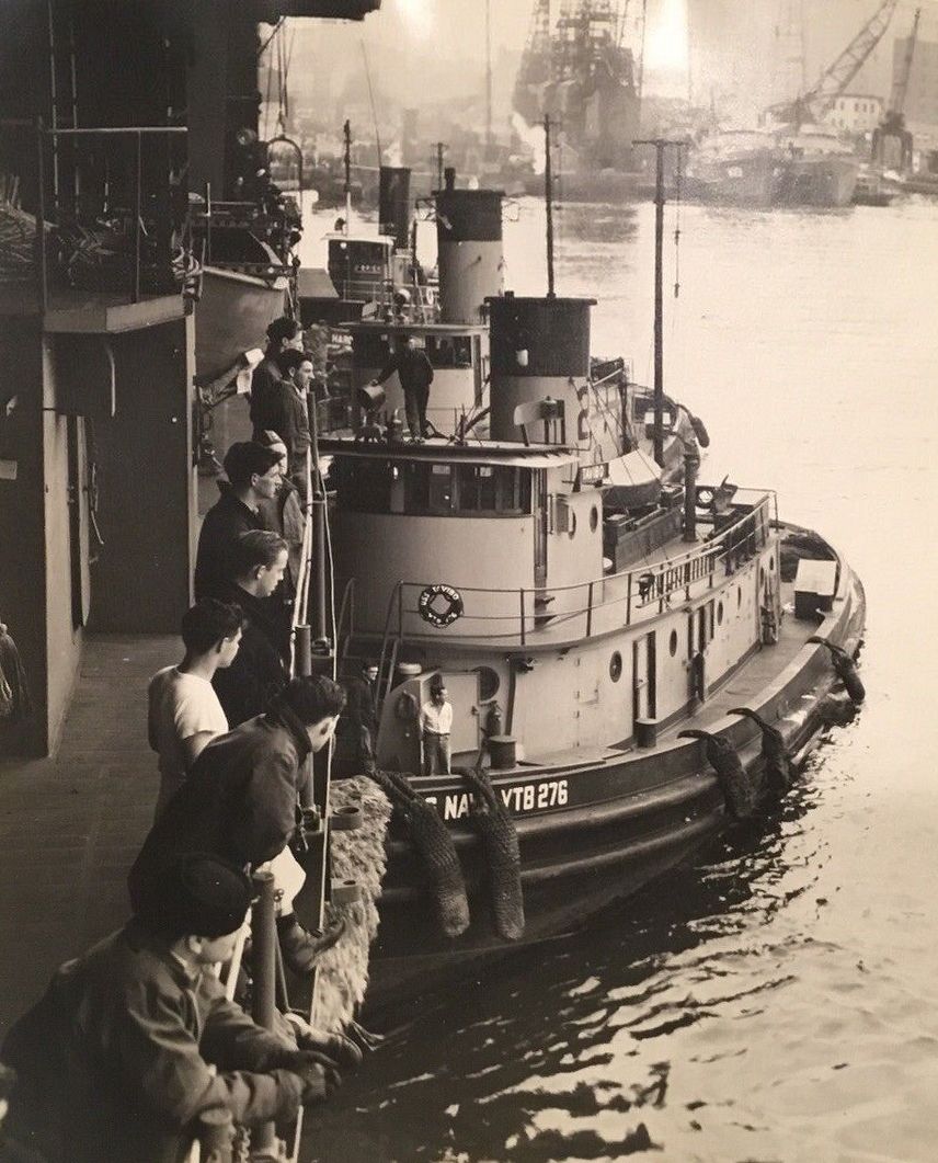 96k | Tavibo (YTB-276) assisting Randolph (CV-15) at New York Navy Yard, late 1945. | Robert Hurst | |